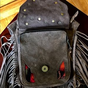 NWOT Handcrafted by a local artisan. One of a kind, perfect for festivals, burning man, parties and traveling. Zipper in front and back. Magnetic closure under the flap has another hidden zippered pocket large enough to hold a iPhone 7 plus/wallet, keys, etc. Embroidery, mirrors and metal studs detailings. Flaw inside of pocket but is not noticeable from outside. The belt is adjustable (12"-17" measured flat) to wear around your waist. Main bag is 9x7", front pocket is 7x6x1", fringe is 9" long.