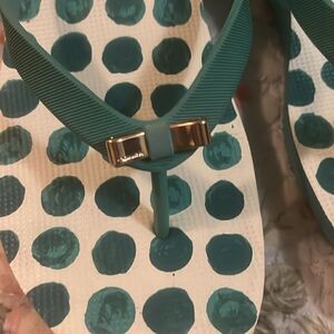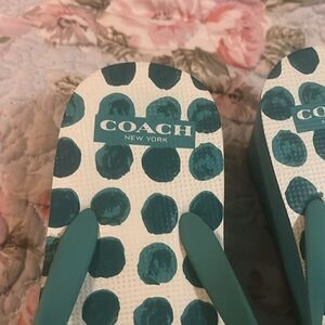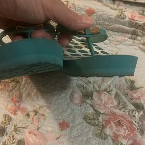 Coach sandals only worn a couple of times they’re in great condition. The color is turquoise.