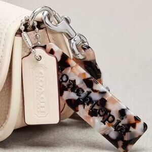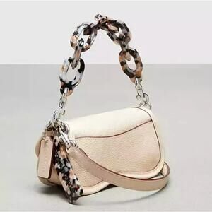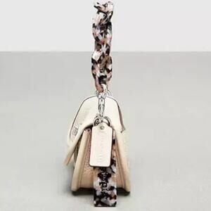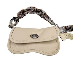 Coachtopia Micro Wavy Dinky Bag In Leather Cream Mini Bag with Acrylic Strap. Cream Leather Beige Mini Bag with Silver Hardware & Tortoise Shell Colorful Chunky Handbag Strap. Convertible Crossbody Bag. Sustainable Bag!