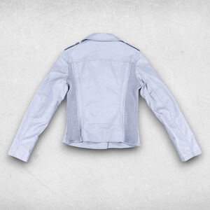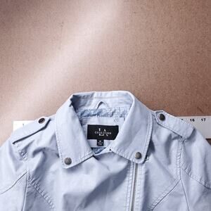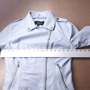Coalition LA Crop Moto Jacket Women M Light Blue Asymmetrical Zip Vegan Leather