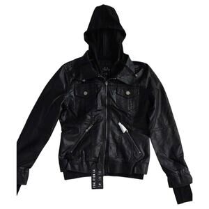 Coalition LA Vegen Lead Leather Hooded Jacket Black Faux Leather Zip Womens Smal