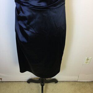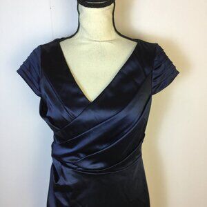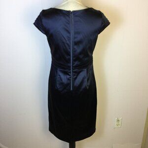 Coast Sheath Dress Sz 8 Womans Navy Blue Stretch Satin Cap Sleeve Pleated V-neck
