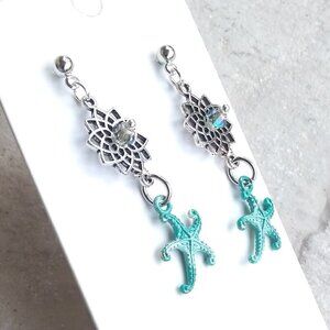 Coastal ~ Beach ~ Island Living! Patina Painted Starfish ~ Sea Star ~ Earrings#3