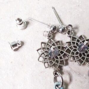 Short + lightweight dangle earrings - featuring a crystal studded lotus connector and verdigris patina painted starfish. As they are handpainted - no two are exactly alike! Stainless steel posts.