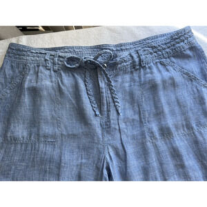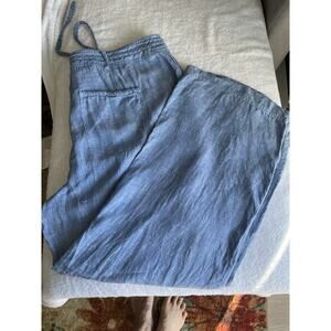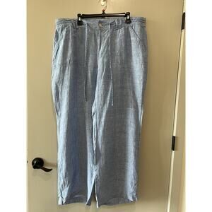 Coastal Blue Linen high waist ,wide Pants with Braided Waist & Pocket Trim Sz 20