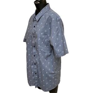 Coastal Blue Palm Print Cotton Button Down Mens Shirt Size Large