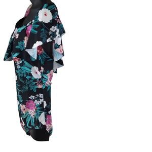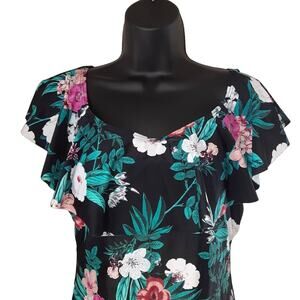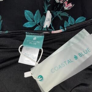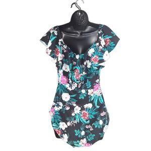 Coastal Blue Size Large Black Floral Off Shoulder Ruffle One Piece Swimsuit NEW