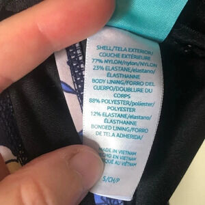 tags: Coastal Blue structured floral bikini top, size small, underwire support, molded cups, halter tie neck, vibrant floral pattern, swimwear, beachwear, poolside attire, comfortable fit, adjustable tie, stylish bikini top, supportive swimwear, flattering design, adjustable neck tie, feminine swim top, versatile bikini, chic beachwear, flattering bikini top, trendy swimwear