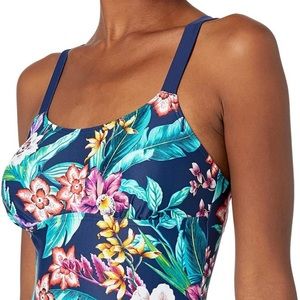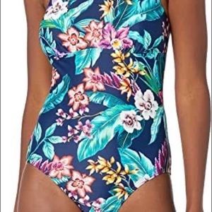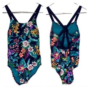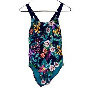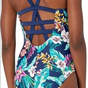 Coastal Blue Tropical Swim Suit. Criss Cross Back. Light padding. Size S.