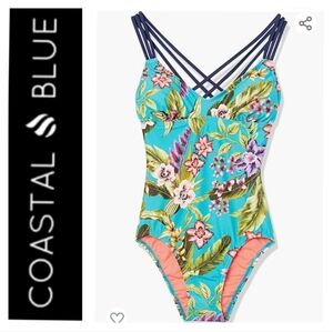 Coastal Blue Women's Floral Print One Piece Swimsuit. Size M.