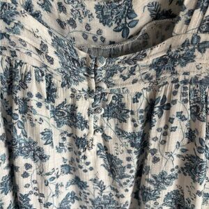 Coastal sleeveless top with a floral tank top with button up back detail. Crisp blue and white top in size extra small.