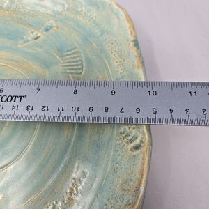Coastal Ceramic Art Piece Plate in Teal and Tan Stamped Starfish & Sea Shells
