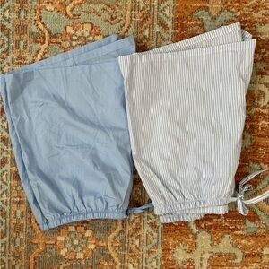 Coastal and beachy vibe short set. One is light blue and the second is white and blue striped. Comfortable and stylish addition to any closet. All you need is a soft white tee or button up blouse.