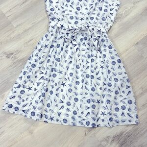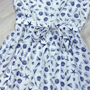 Coastal Chic Nautical Seashell Print Swiss Dot Cotton Sash Tie Waist Sun Dress