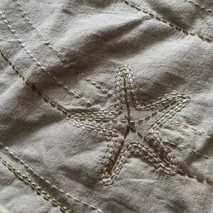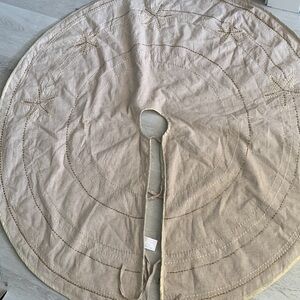 Coastal Christmas skirt Starfish Ivory Burlap Beaded Shells Tree 47 Inches