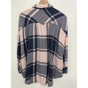 Coastal Cowgirl Grunge Indie Sleaze Windowpane Plaid Button Up Top XS Boho Boyfriend 90s Y2K Oversized Layer Streetwear Western Rodeo Ranch Farmcore Shacket Festival Cabincore Multicolor Pink Blue.