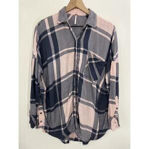 Coastal Cowgirl Grunge Indie Sleaze Plaid Button Top XS Boho Boyfriend 90s Y2K