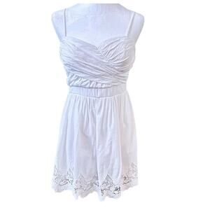 Coastal Cowgirl White Ruched Ruffles with eyelet Dress Small Cottage Coquette