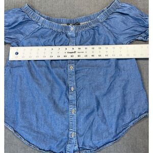 Coastal Denim Off Shoulder Top Women S Blue Button Front Boho Cowgirl Core