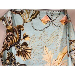 Coastal Floral Maxi Skirt Blue Wrap OS Sarang Euro Summer Preppy Boho Hippie