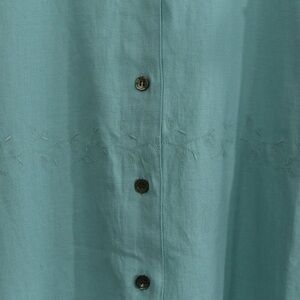 Coastal Grandmother 100% Linen Button Front Midi Dress Women’s Medium Aqua Blue