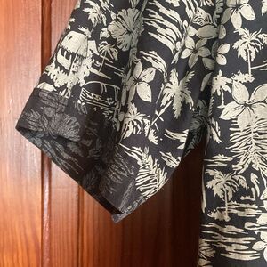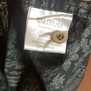 Coastal Hawaiian Palm Tree Beach Button Down Short Sleeve Shirt Sz M