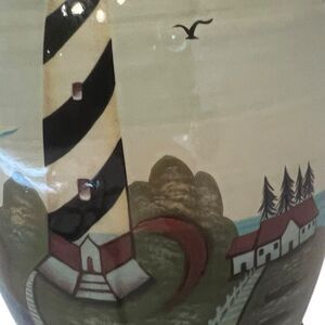 Coastal Lighthouse Ceramic Lamp Nautical Decor Hand Painted Table Light