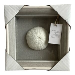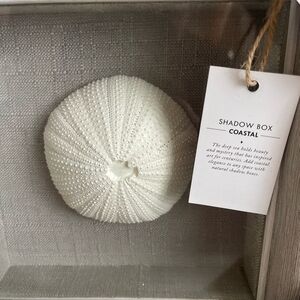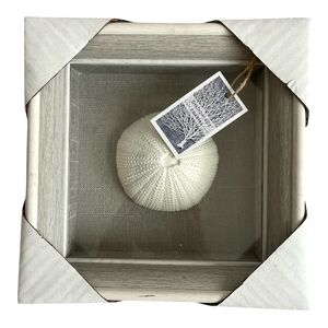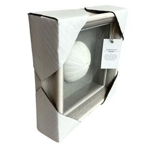Elegant coastal shadow box featuring a white sea urchin. Perfect for adding a touch of the ocean to your decor.