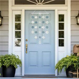 🧿Coastal Wall Art, Ready to Hang: Handcrafted beach wall decoration in soft blue and white tones, featuring a subtle rustic weathered finish. Each wall hanging arrives pre-strung and includes 1 adhesive hook for instant hanging – ideal for farmhouse bathrooms, beach cottage bedrooms, or porch accent walls.