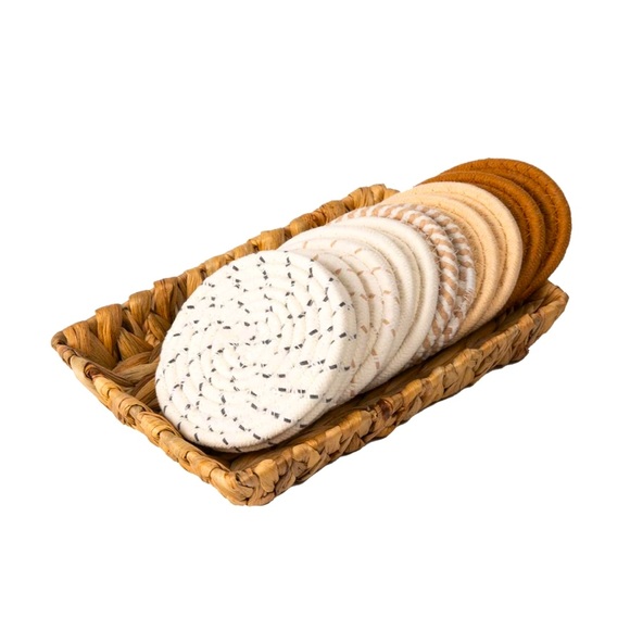 Beautifully crafted water hyacinth tray to hold 12 boho style drink coasters. Damp resistant and super stylish.