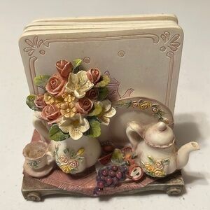 Coaster set, porcelain with miniatures