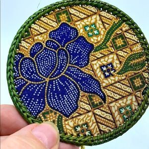 12 coasters in a coordinating holder is a perfect hostess gift.Coasters are fabric with a woven back.