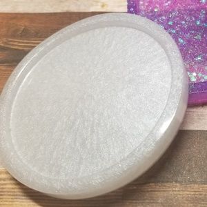 Set of 4 handmade, plastic-like resin coasters. Circular shape. All pearl white as pictured. Will not all be identical due to craftmanship. These are made upon ordering so please allow 2-4 days for shipping once purchased.