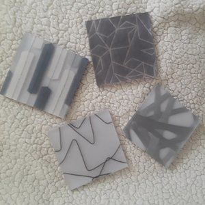 This set of four coasters are one of a kind...truly! Size is indicated in pic. Super sturdy and made of recycled plastics. The design is sandwiched between layers, so the designs are forever! Great company for your coffee table!