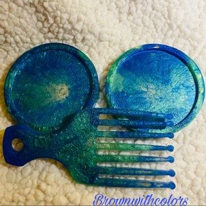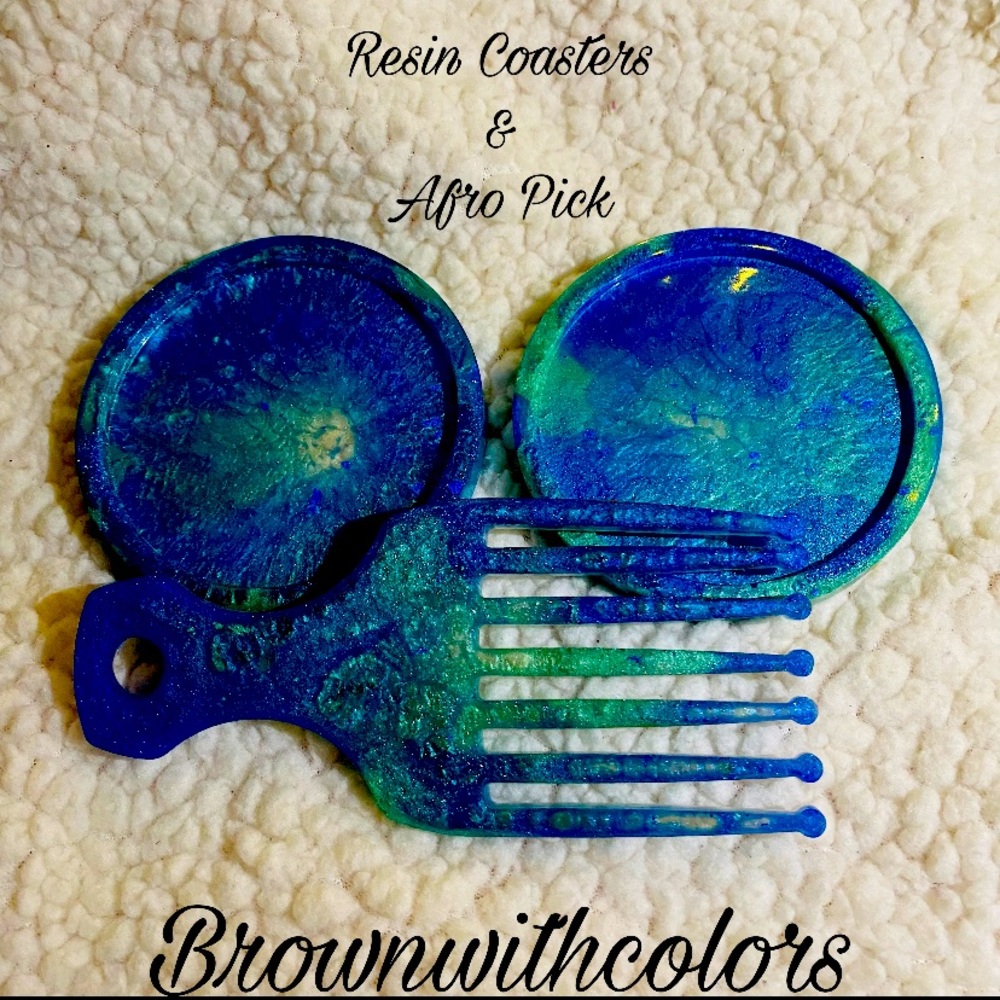 Small Resin coasters 2 in total with Afro pick/hair pick