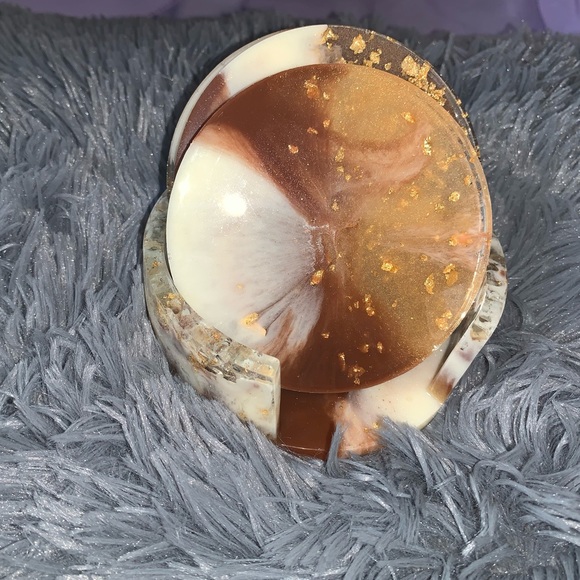 Hand made acrylic resin sealed coaster set! A set of 4 coaster and holder
