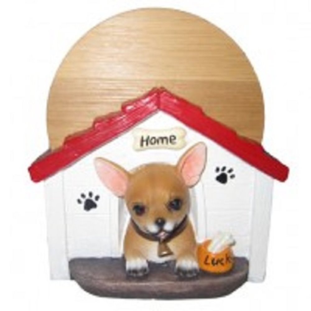 Brand new set of coasters. There are 4 round coasters set in a chihuahuas house.