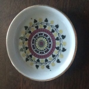 4 ceramic coasters with a thin gold trim around the rim. They measure 3 1/2".