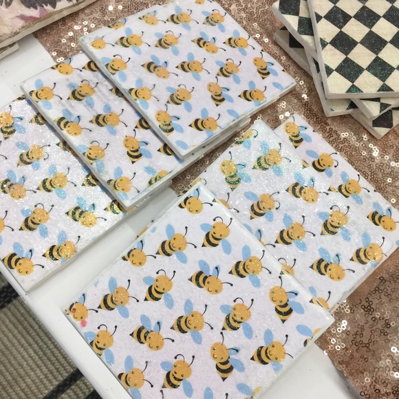 4xx4 bee coasters. Decoupaged, sealed and waterproofed.