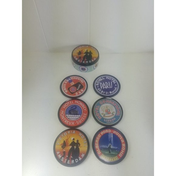Coasters From Exciting Destinations Across Europe Laughing Elephant 6 Ct Set. This set comes with a cute tin!