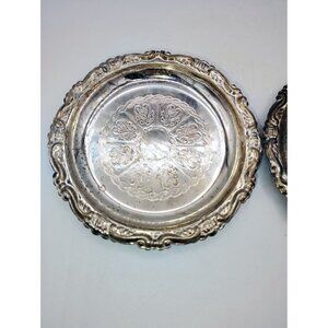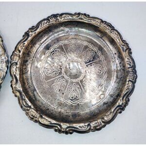 Coasters Silver Plate Ep On Steel Vintage Italy 4 Inch Trinket Tray Small Pair