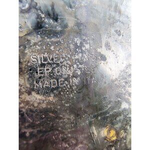 These small elegant vintage silver-plated coasters were crafted in Italy. Perfect for adding a touch of sophistication to any home decor, they can double as trinket trays and are ideal for protecting surfaces while showcasing their timeless style.