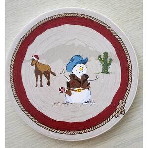 Very cute set of four stoneware coasters featuring a cowboy snowman on each coaster. It has a Winter/Christmas theme and are very nice all year round. Cork on the back.