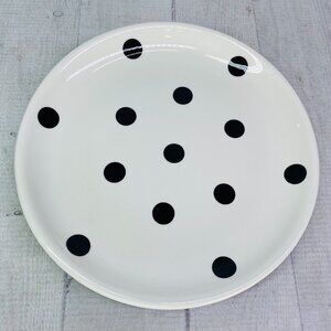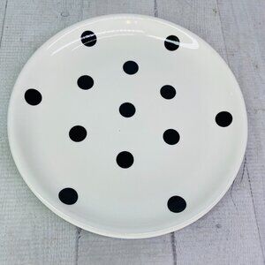 Coastline Imports White Black Polka Dots Earthenware 8" Round Plates Set of 4