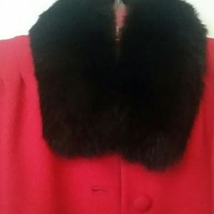 Red custom 6 button down coat with fur collar and fur trim at the bottom mrs. Claus would be jealous