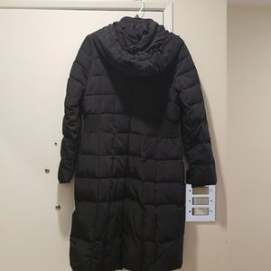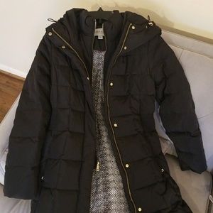 Beautiful Cloe Haan black coat with hood and amazing detail. Gold zipper and snaps.