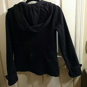 Woman's three-button two-pocket hooded coat