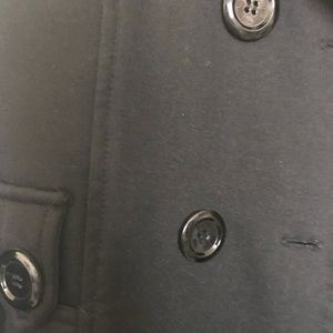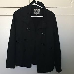 Black YMI coat. Soft on the inside with two side pockets on each side of the coat. On the back it is detailed with 2 buttons.