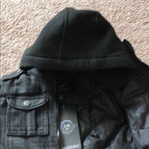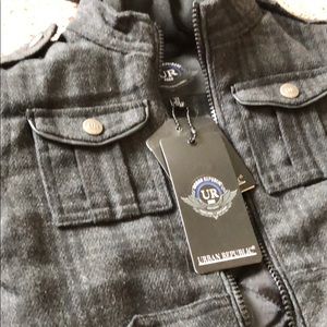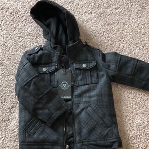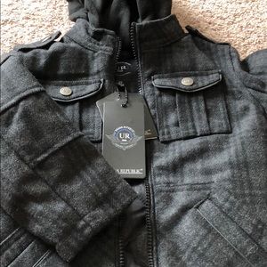 Charcoal and black zip up black hooded coat from Nordstrom brand is called urban republic size 3 tea zips up and has pockets never been worn brand new!