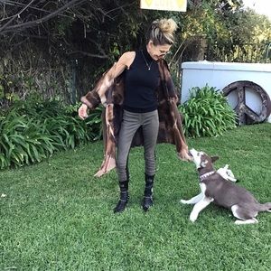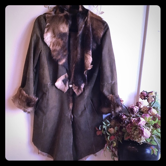 Fabulous tri coloured fur lined shawl jacket in chocolate brown . I bought this in London , it is extremely warm yet light , easy and lovely to wear . It is in excellent condition and has been kept in cool storage